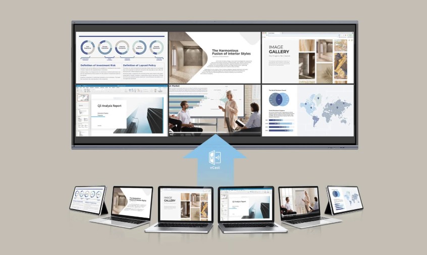 Neztrácejte drahocenný čas schůzky nastavováním. Využijte okamžité a simultánní bezdrátové sdílení obrazovky až 9 zařízení prostřednictvím aplikace vCast pro efektivní komunikaci a spolupráci během týmových schůzek.