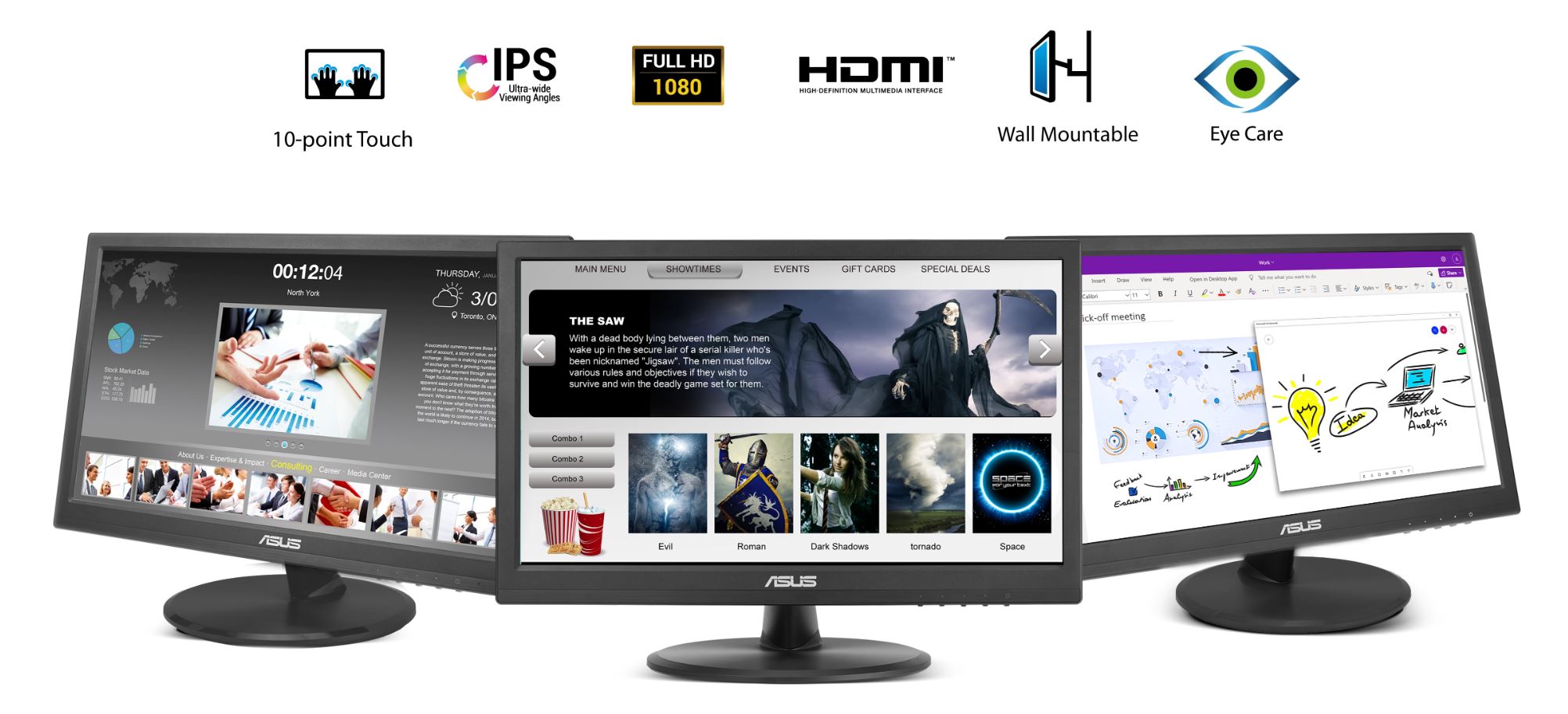 ASUS VT169HE je 15,6palcový IPS monitor s rozlišením Full HD (1920x1080), který kombinuje schopnost 10bodového vícedotykového ovládání s vynikající kvalitou obrazu, flexibilní konektivitou, odolností a udržitelností. Přesný a spolehlivý vícedotykový displej - umožňující až 10 dotyků současně - je optimalizován pro použití s operačním systémem Windows 11/10, což vám umožní pracovat chytřeji a efektivněji a je ideální i pro použití ve službách.