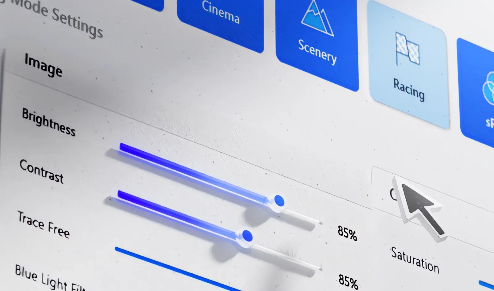 Snadné rozlišení barev na obrazovce, nastavení připomínek v pětiminutových intervalech, které vás upozorní, že je čas udělat si přestávku, nastavitelné úrovně filtru modrého světla podle vašich preferencí nebo jakéhokoli scénáře, integrovaná technologie s certifikací TÜV Rheinland snižuje blikání a zajišťuje tak pohodlné sledování.