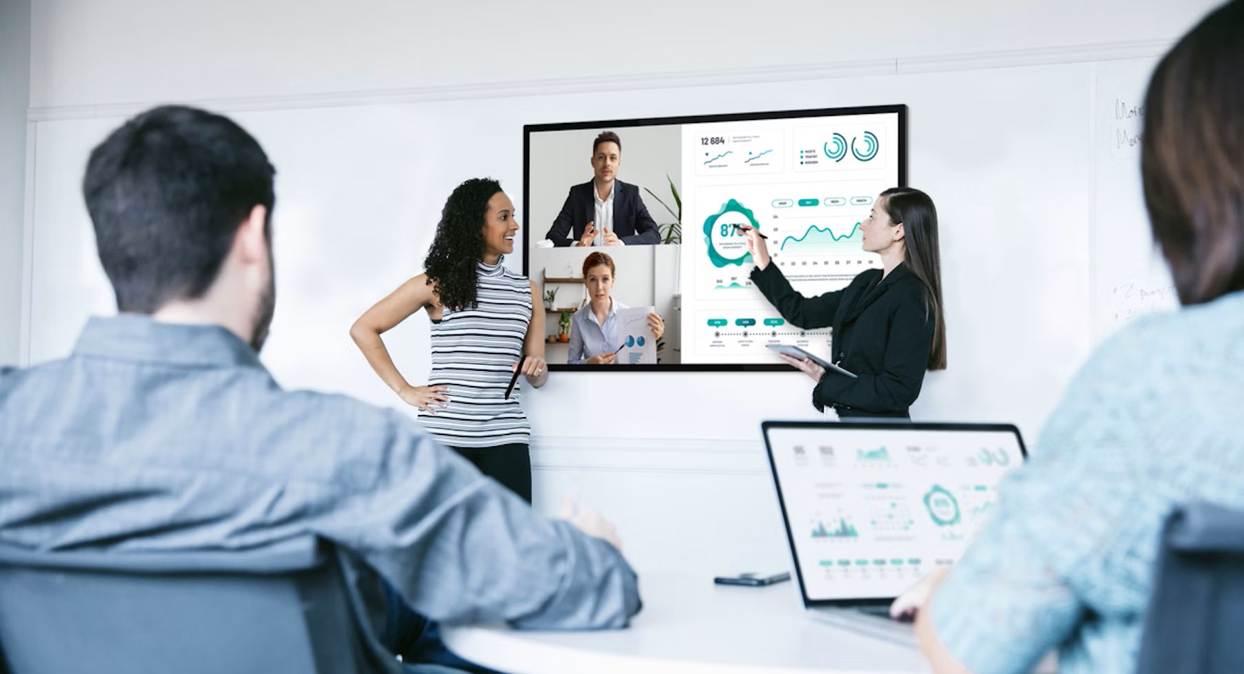 Inspirujte agilní spolupráci pomocí režimu bílé tabule. Jednoduše aktivujte tuto funkci a proměňte svůj displej v prázdné plátno, na které může více uživatelů kreslit rukou nebo speciálními fixy. Vše, co se zobrazuje na obrazovce, lze poté streamovat zpět do notebooku pro snadný tisk nebo sdílení souborů.