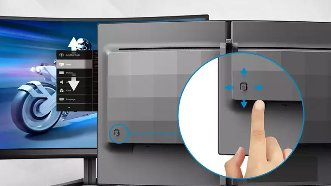 Diskrétně umístěné tlačítko EasySelect pro přepínání v nabídce umožňuje rychle a snadno provádět změny nastavení monitoru v nabídce na obrazovce.