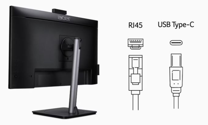 Tento monitor Acer s dokovací stanicí disponuje přidanými porty a volitelnými funkcemi, jako jsou například KVM přepínač, port USB-C, port RJ45 a 2,5Gb ethernetový port pro ještě vyšší rychlost sítě.