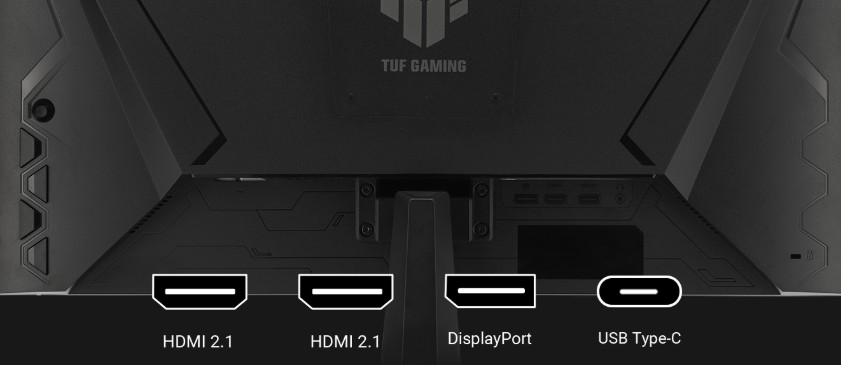 Široká škála možností připojení zahrnuje dva porty HDMI® 2.1, port DisplayPort™ 1.4 a port USB typu C, což zajišťuje širokou kompatibilitu s různými vstupními zdroji.