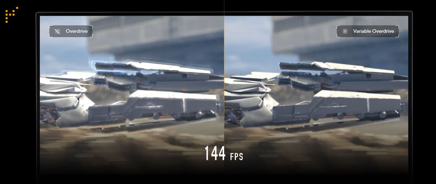 Integrovaná technologie ASUS Variable Overdrive umožňuje displeji dynamicky měnit nastavení overdrive v závislosti na kolísání snímkové frekvence, čímž zajišťuje optimální výsledky pro jakoukoli hru. Vyberete si, jak silný chcete, aby byl celkový efekt, a monitor se o zbytek postará.
