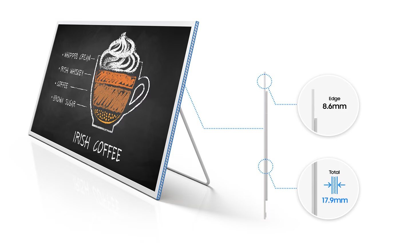 Řada EMDX se vyznačuje elegantním, tenkým a esteticky příjemným designem. S tloušťkou pouhých 17,9 mm, tenkou jako papír, vylepšuje různé obchodní prostory svou bezkonkurenční elegancí.