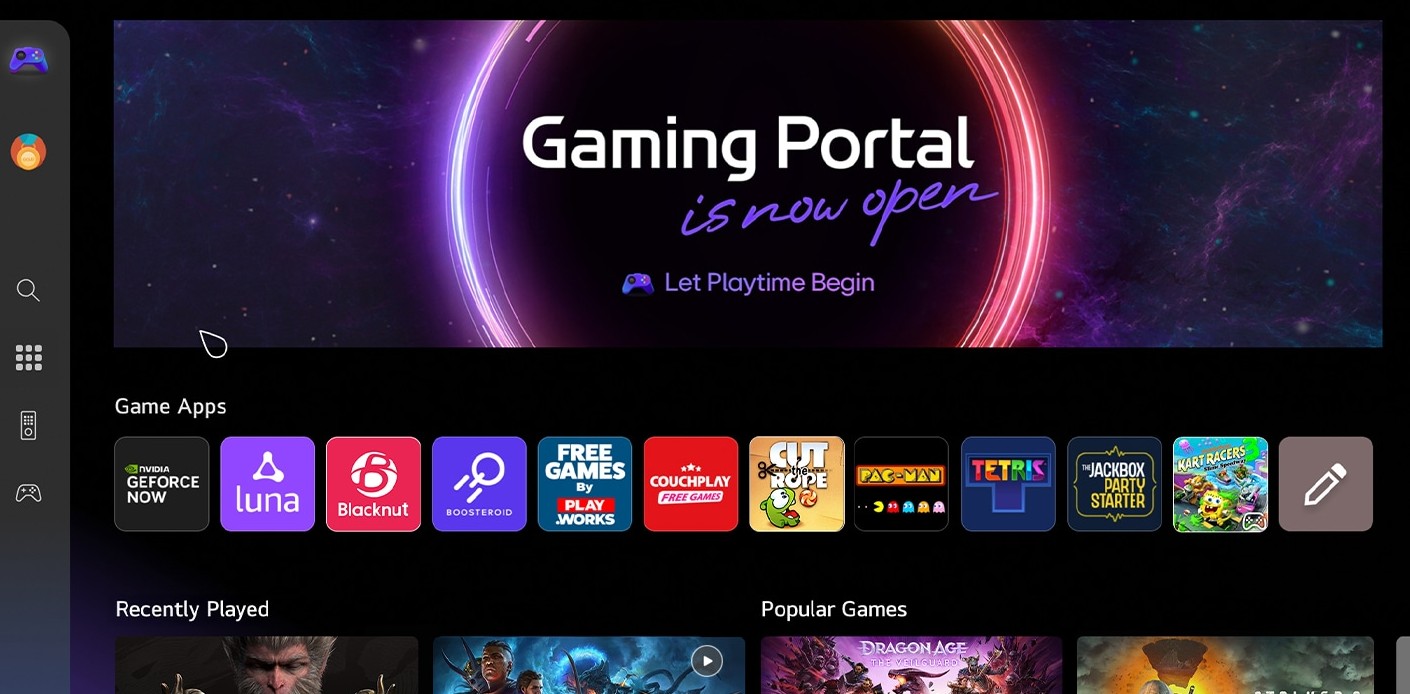 Herní portál je platforma přizpůsobená pro hraní her, která nabízí přizpůsobené prostředí s možností výběru menu pro gamepady nebo dálkové ovladače a podporou personalizované gamifikace. Můžete sledovat žebříčky a body mezi hráči a zároveň snadno přistupovat k široké škále titulů, od AAA až po sociální hry. Díky partnerství s předními cloudovými herními službami, jako jsou GeForce NOW, Amazon Luna a brzy i Xbox Cloud, spolu s nativními hrami pro webOS, umožňuje hraní bez nutnosti externích konzolí nebo zařízení a poskytuje tak dokonalý herní zážitek.