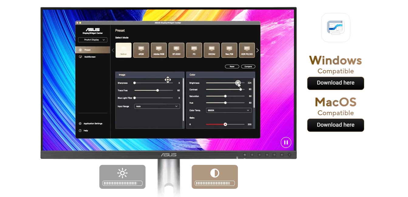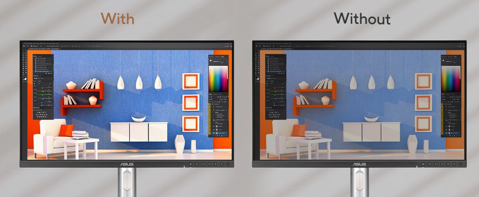 Monitor PA32QCV je vybaven technologií ASUS Light Sync se dvěma senzory, které zajišťují mimořádně jasný obraz a přesnou barevnou teplotu.