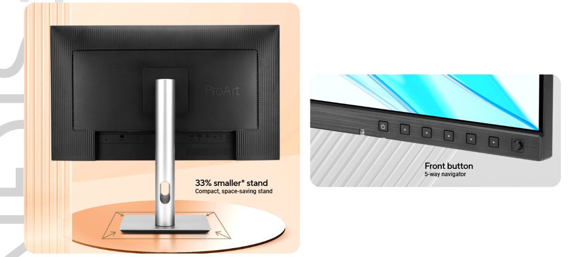Každý displej ProArt je vybaven ergonomickým stojanem s možností naklonění, otočení, otočení a nastavení výšky pro pohodlné sledování. Možnost otočení obrazovky o 90° ve směru nebo proti směru hodinových ručiček pro použití v režimu na výšku se hodí při práci s dlouhými dokumenty, programováním nebo procházením webu. Funkce rychlého uvolnění navíc usnadňuje připevnění displeje pomocí integrovaného nástěnného držáku VESA – bez šroubů, takže je to hotové během několika sekund!