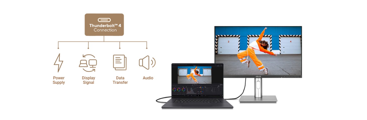 Porty Thunderbolt™ 4 v monitoru PA32QCV umožňují superrychlý přenos dat, připojení DisplayPort a napájení 96 W pro nabíjení notebooků a dalších zařízení – to vše pomocí jediného kabelu. PA32QCV slouží také jako rozbočovač USB: jakékoli zařízení připojené k USB portům monitoru získá přístup k dalším připojeným periferiím.