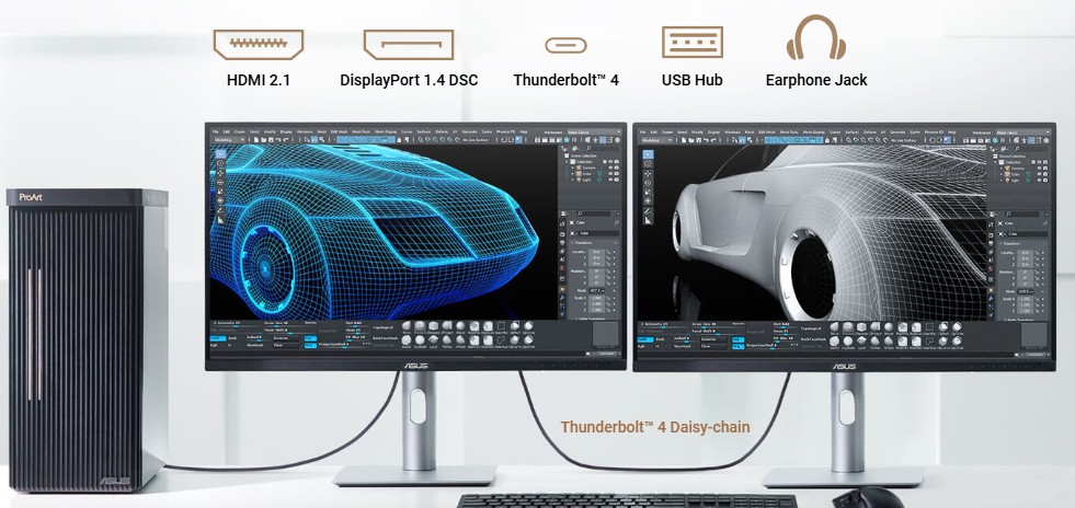 Kromě dvou portů Thunderbolt™ 4 nabízí PA32QCV celou řadu možností připojení, včetně HDMI® 2.1, DisplayPort 1.4 DSC, USB typu A a dalšího downstream portu USB-C® pro kompatibilitu s širokou škálou zařízení. PA32QCV také obsahuje průchozí port pro sluchátka.
