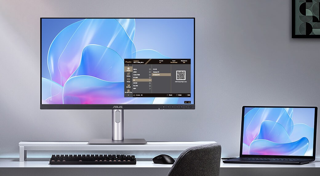 Přednastavené režimy ProArt nabízejí několik možností barevného gamutu. Nový režim M Model – P3 Color Preset je speciálně navržen tak, aby odpovídal barevnému výkonu zařízení macOS a PA32QCV. To zajišťuje dokonalou konzistenci barev na všech obrazovkách, díky čemuž je tento režim ideální pro úkoly, kde je barva rozhodující, jako je úprava fotografií, produkce videa a grafický design.