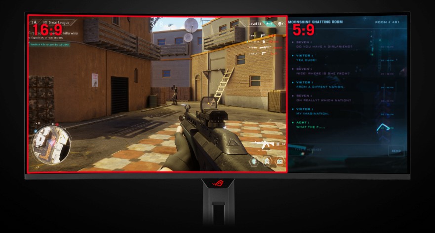 Funkce ASUS Virtual Screen umožňuje systému Windows rozpoznat jeden monitor jako dva nezávislé displeje, takže můžete vytvořit virtuální displej s formáty 1:1, 2:1 nebo 1:2. Díky tomu můžete pomocí jediného zdroje* snadno otevřít dvě okna současně, vychutnat si hraní her nebo videa na YouTube v pevném okně 16:9 bez černých pruhů a zároveň používat další chatovací místnost nebo streamovací aplikaci jako nezávislý displej.