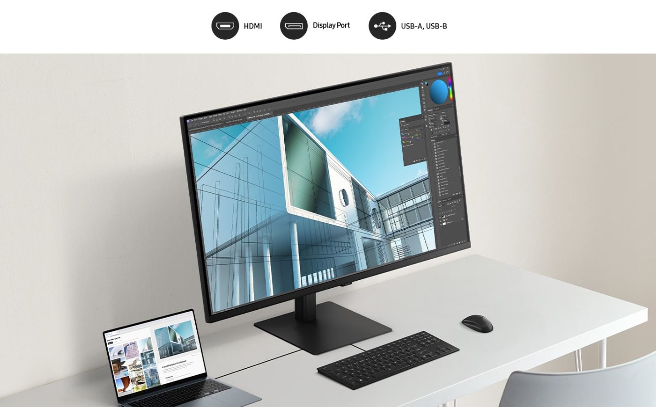 S rozhraními HDMI, DisplayPort, USB-A a USB-B je připojení všech periferií maximálně snadné. Ty tak budeš moci zvýšit svoji pracovní produktivitu a zároveň si vytvořit prostředí přesně podle svých představ.