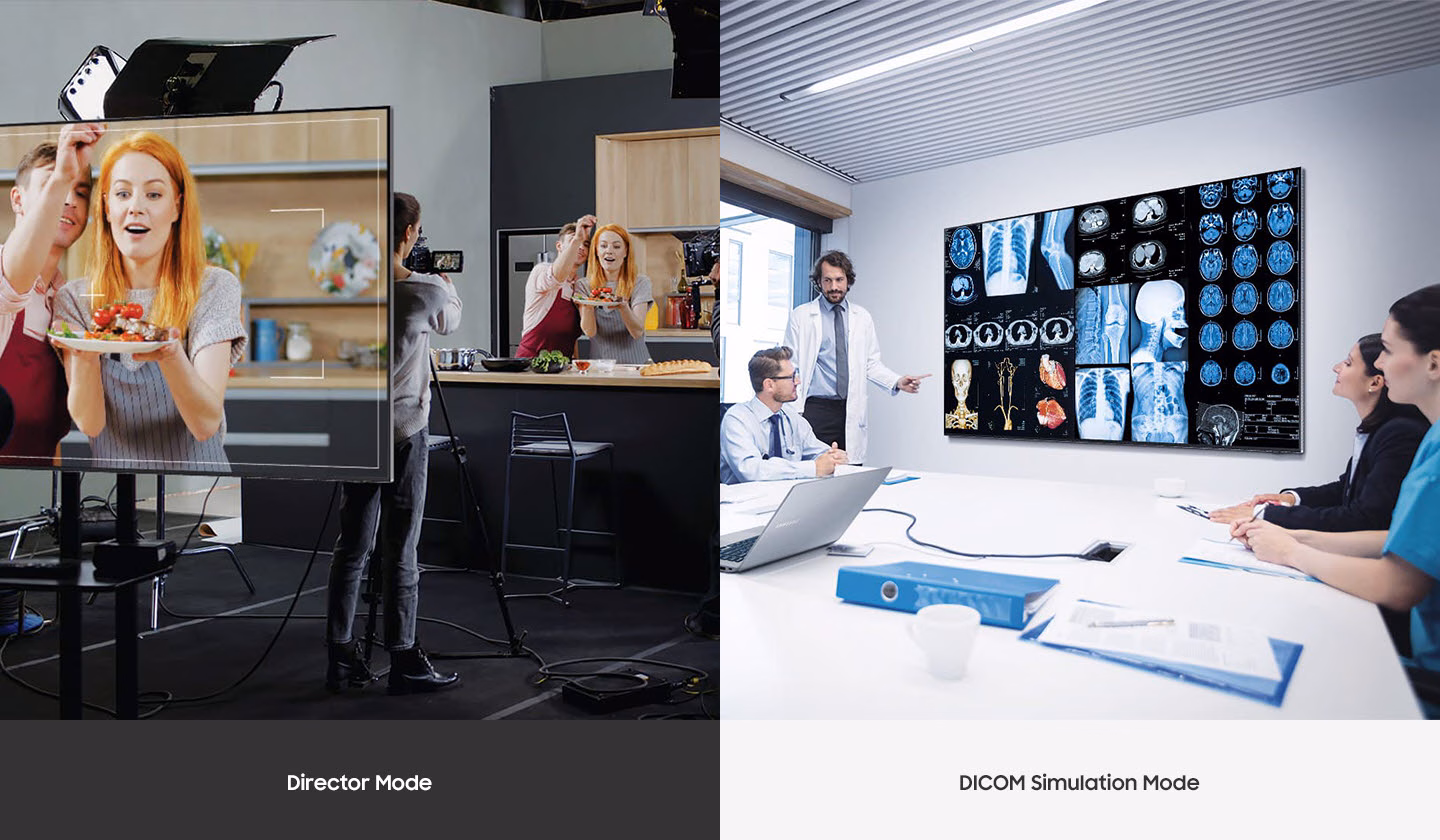 Vestavěné profesionální režimy přinášejí vyšší flexibilitu v rozličných situacích. Režim Director Mode minimalizuje dodatečné úpravy obrazu a přinese zážitek přesně tak, jak to jeho režisér zamýšlel. Zdravotnické týmy pak budou moci simulovat medicínské snímkování typu rentgenu s režimem DICOM Simulation Mode, který plně vyhoví standardům dokonalého pokrytí odstínů šedé.