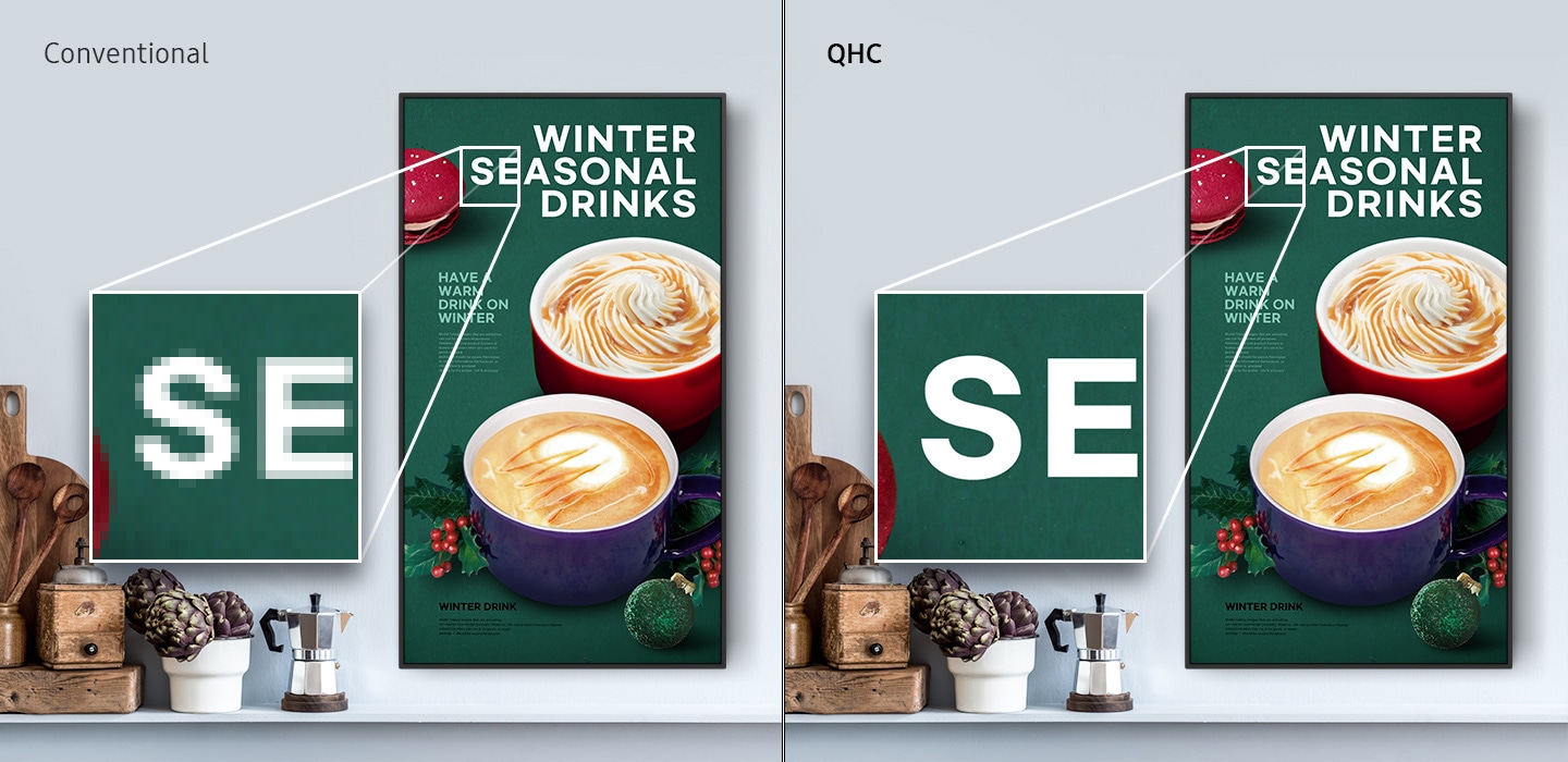 Přivítejte QHC – vůbec nejtenčí displej z řady profesionálních displejů Samsung UHD. Do vašeho podnikání přináší eleganci a zároveň na maximum využívá jemu dostupný prostor. Vylepšená interní řešení a intuitivní uživatelské rozhraní na domovské obrazovce usnadňují jeho používání. Ať už podnikáte v jakémkoliv oboru, efektivita a inovace v designu QHC vám pomohou mnohem snáze dosáhnout dalšího růstu.