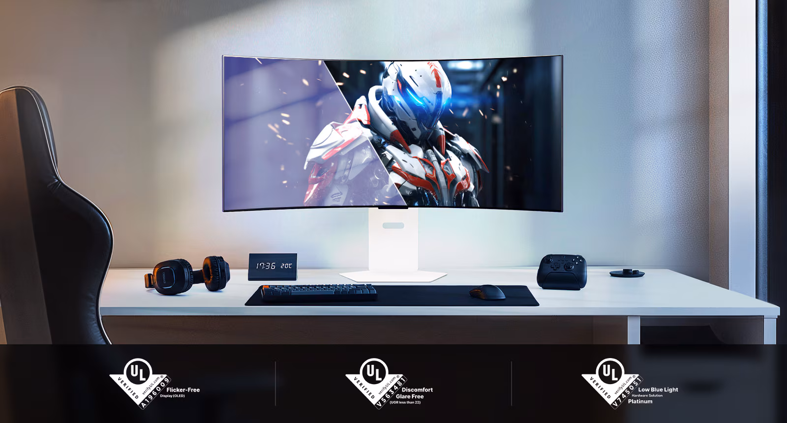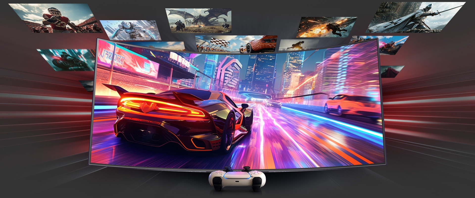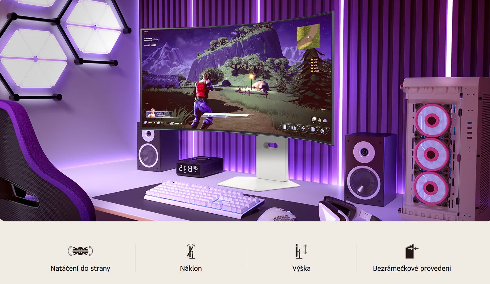Zakřivený monitor OLED nabízí díky vyváženému a optimalizovanému poměru stran 21:9 pohlcující a podmanivý zážitek při hraní her i sledování různého zábavního obsahu.