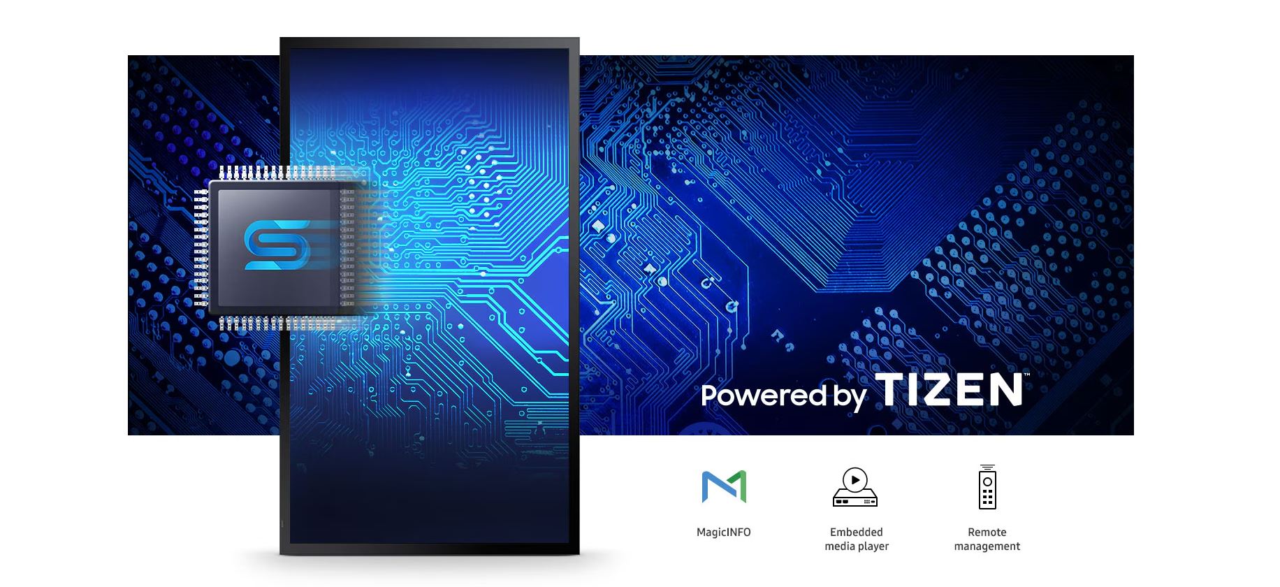 Vestavěný přehrávač MagicINFO Player S10, podporovaný výkonným operačním systémem Tizen, zvyšuje celkový výkon displeje a nabízí jednoduchou správu obsahu. To zajišťuje bezproblémové přechody a přehrávání, které přinášejí lepší zážitek zákazníkům i vedoucím prodejen.