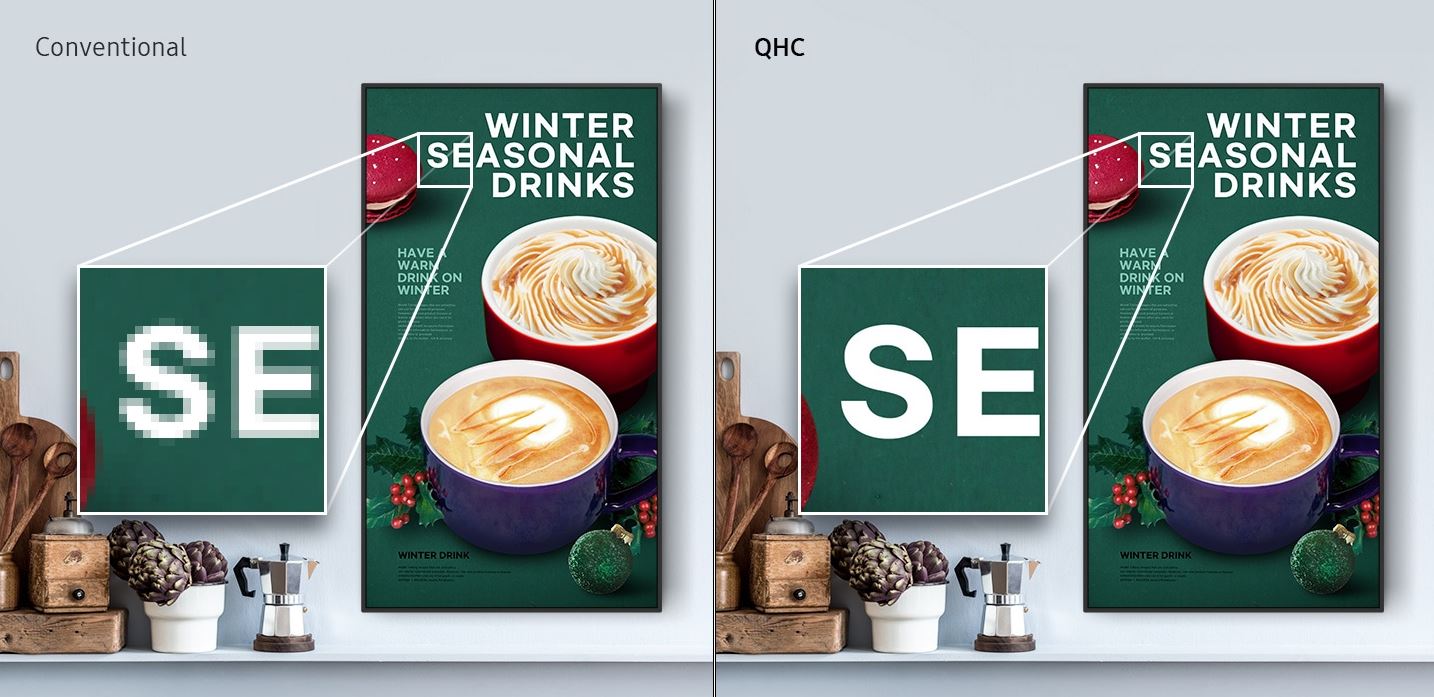 Přivítejte QHC – vůbec nejtenčí displej z řady profesionálních displejů Samsung UHD. Do vašeho podnikání přináší eleganci a zároveň na maximum využívá jemu dostupný prostor. Vylepšená interní řešení a intuitivní uživatelské rozhraní na domovské obrazovce usnadňují jeho používání. Ať už podnikáte v jakémkoliv oboru, efektivita a inovace v designu QHC vám pomohou mnohem snáze dosáhnout dalšího růstu.