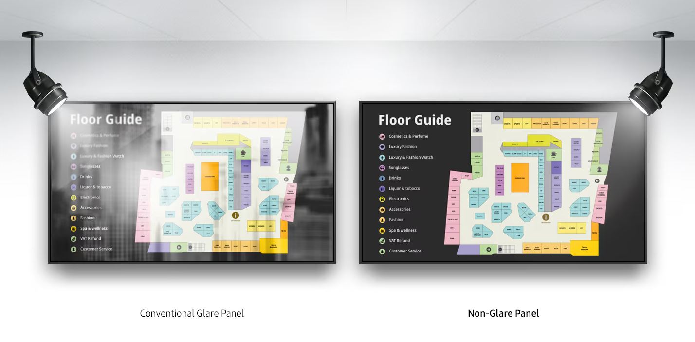 Displeje QHC jsou vybaveny spolehlivými neoslňujícími panely, které poskytují lepší viditelnost ze všech úhlů a v kteroukoli denní dobu. Neoslňující displej umožňuje podnikům poskytovat přesné informace na kritických místech, jako jsou letiště a vlaková nádraží.