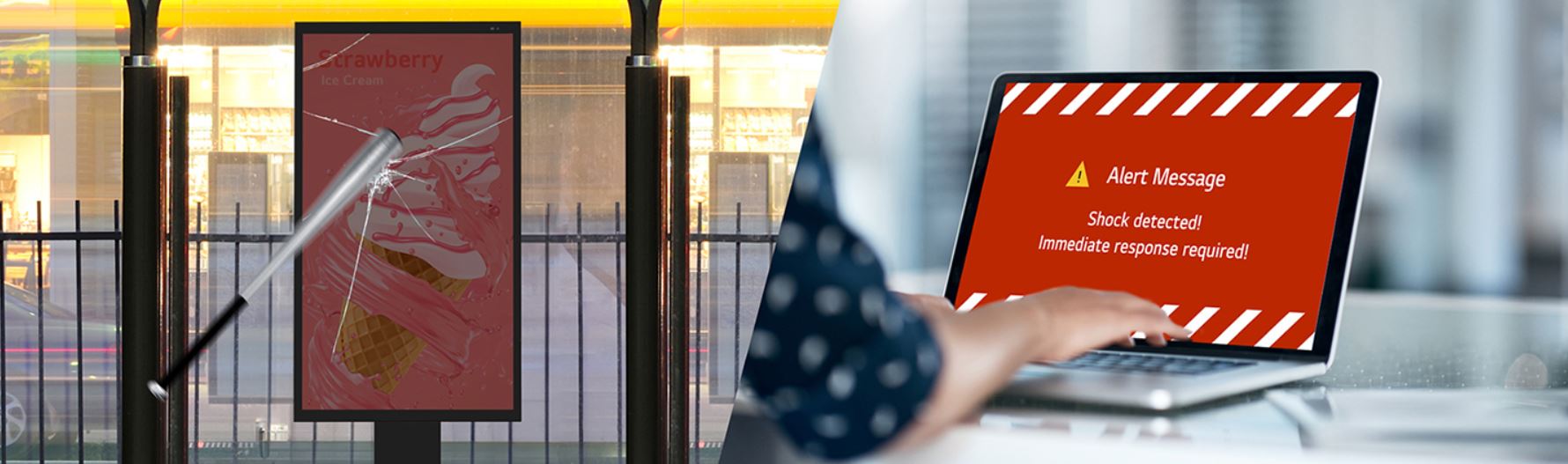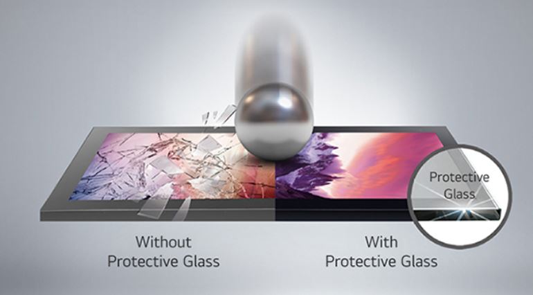 Model XE4P-B je vybaven ochranným sklem z tvrzeného a laminovaného skla odolným proti nárazům s certifikací IK10, které je určeno pro náročné venkovní podmínky. Minimalizuje tak poškození vnějšími nárazy a výměny modulů LCD, což vede k úspoře nákladů na údržbu.