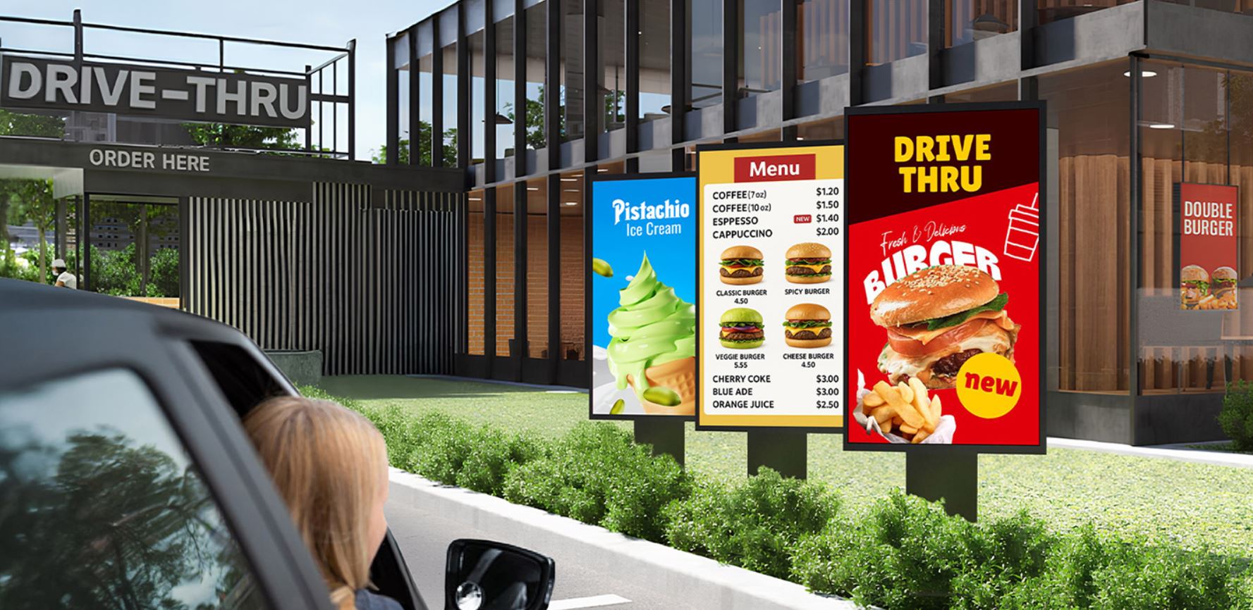 Při prezentaci produktových nabídek nebo reklamě na nový produkt lze využít nastavení více displejů. Operátoři mohou snadno synchronizovat hodnoty podsvícení napříč displeji úpravou synchronizace podsvícení v interních nastaveních. Tato uživatelsky přívětivá funkce pomáhá snadno udržovat konzistentní barevné podání.