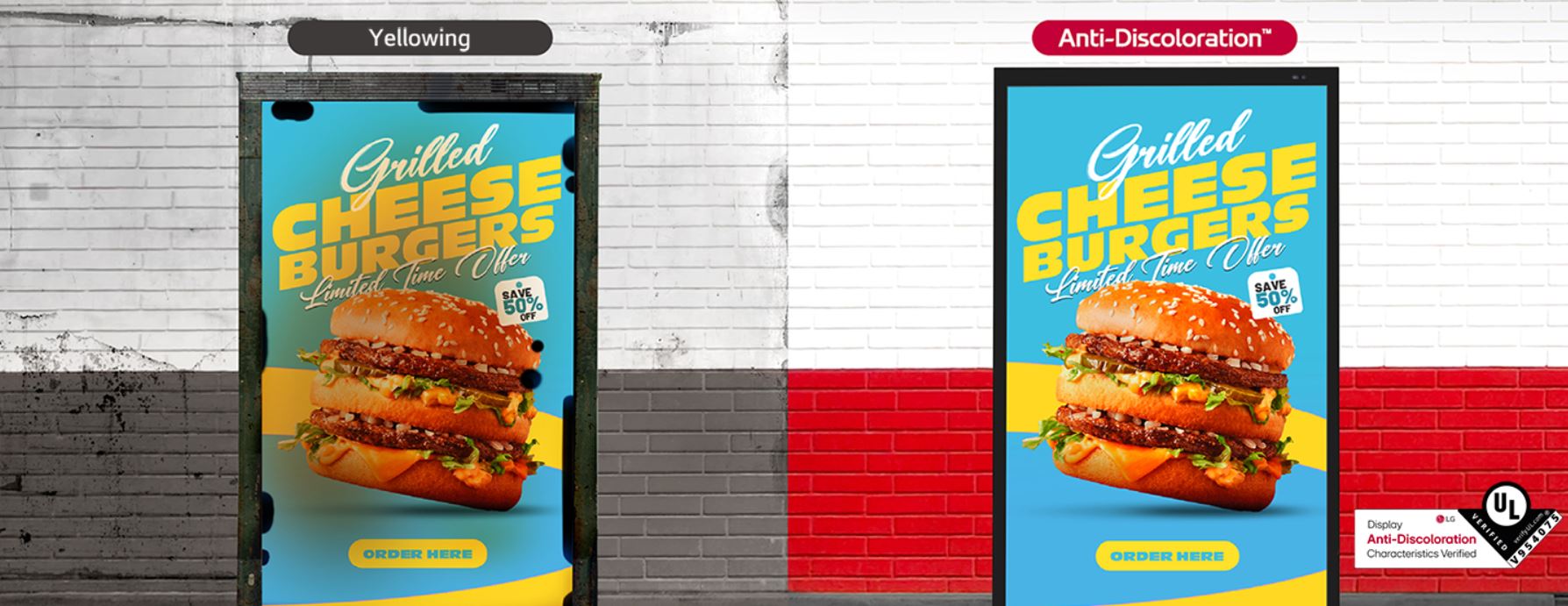 Zejména v oblasti odolnosti proti žloutnutí obrazovky jsme získali jako první na světě certifikaci UL pro odolnost displejů proti zabarvení. Certifikovaný model XE4P-B od společnosti UL může zmírnit obavy ze žloutnutí obrazovky, což je nejčastější, ale zároveň nejobtížnější problém u venkovních digitálních značkovacích produktů.