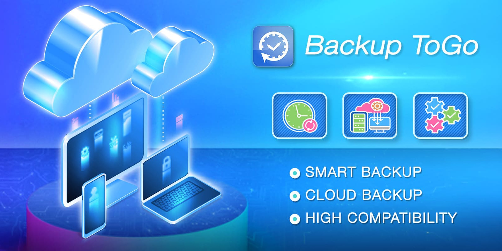 Backup ToGo používá algoritmus pro chytré a snadné zálohování všech vašich dat. Nastavte požadované plány zálohování a již se nikdy nebudete muset obávat ztráty dat! Software Backup ToGo je navíc vybaven funkcí zálohování do cloudu, která podporuje zálohování do cloudu, na místní pevné disky, a dokonce na mobilní zařízení. Software Backup ToGo je nástroj s intuitivním rozhraním, se kterým je zálohování dat hračka!