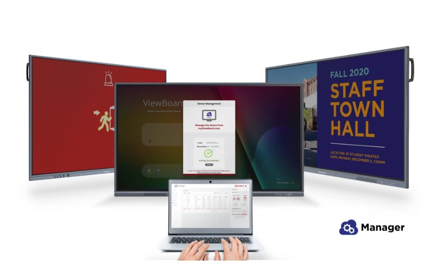 myViewBoard Manager nabízí bezpečný a uživatelsky přívětivý systém vzdálené správy, který umožňuje aktualizaci, plánování, vysílání a současnou správu více displejů z libovolného místa. Ušetřete čas a úsilí díky zjednodušenému systému komunikace v areálu školy, který umožňuje efektivní doručování textových oznámení, multimediálních zpráv a nouzových poplachů. Upozornění: * Plánování úkolů a multimediální vysílání jsou k dispozici s volitelnou licencí Manager Advanced.