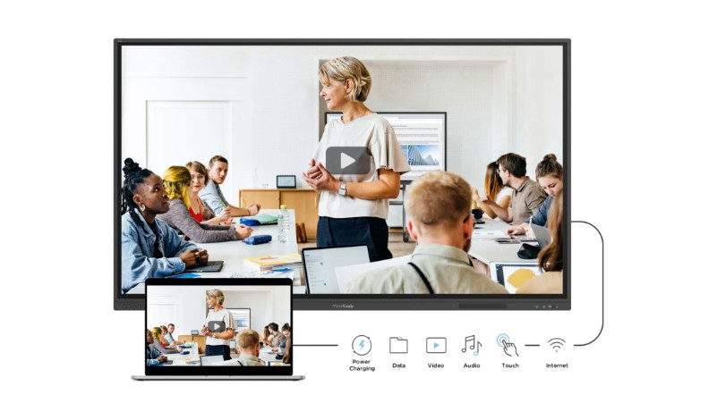 Vyzkoušejte plynulé připojení díky řešení s jedním kabelem USB-C. Stačí připojit notebook, stolní počítač nebo mobilní zařízení a okamžitě můžete prezentace zobrazit na velké obrazovce, kde je uvidíte jasněji a můžete k nim přidávat poznámky. Díky napájení až 65 W pohodlně nabíjí připojená zařízení a vytváří tak přehledný pracovní prostor.