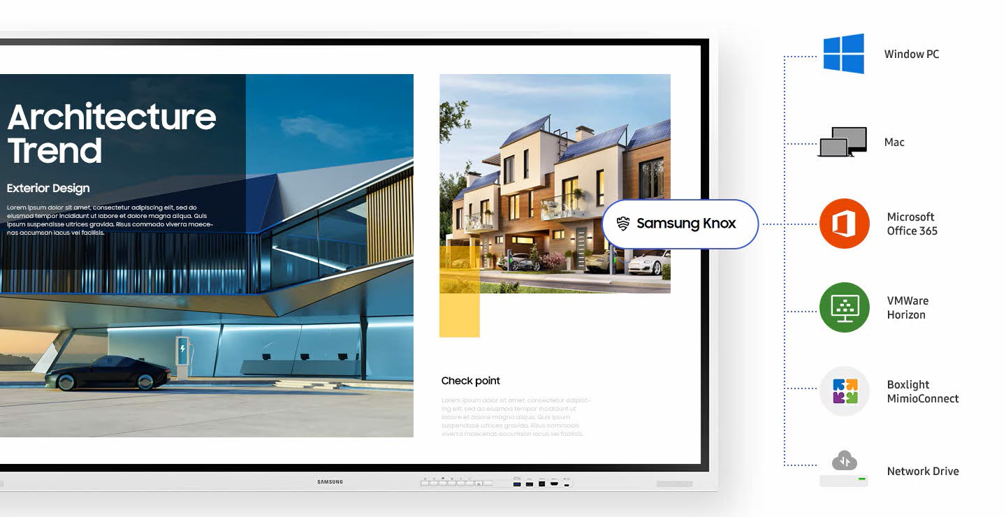 S rozhraním Workspace od Knoxu se uživatelé Flip Pro lehce dostanou ke vzdálenému počítači, síťovému disku a dalším aplikacím třetích stran, jako je Office 365, VMWare nebo Boxlight MimioConnect. To zajistí efektivitu odkudkoliv a nerušený workflow jak pro vyučující, tak i studenty.