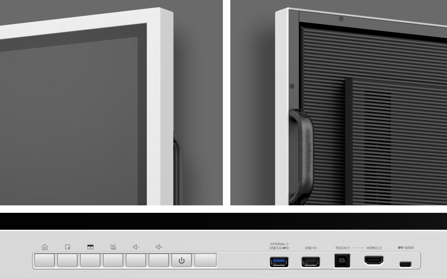 Konektivita je zdokonalená díky 3 v 1 USB-C portu, který umožňuje zrcadlení plochy, dotykové ovládání nebo třeba nabíjení externího zařízení (max 65W). Prostřednictvím USB-C portu se mohou vyučující připojit a odučit interaktivní a zábavnou hodinu, aniž by cokoliv narušovalo její průběh.