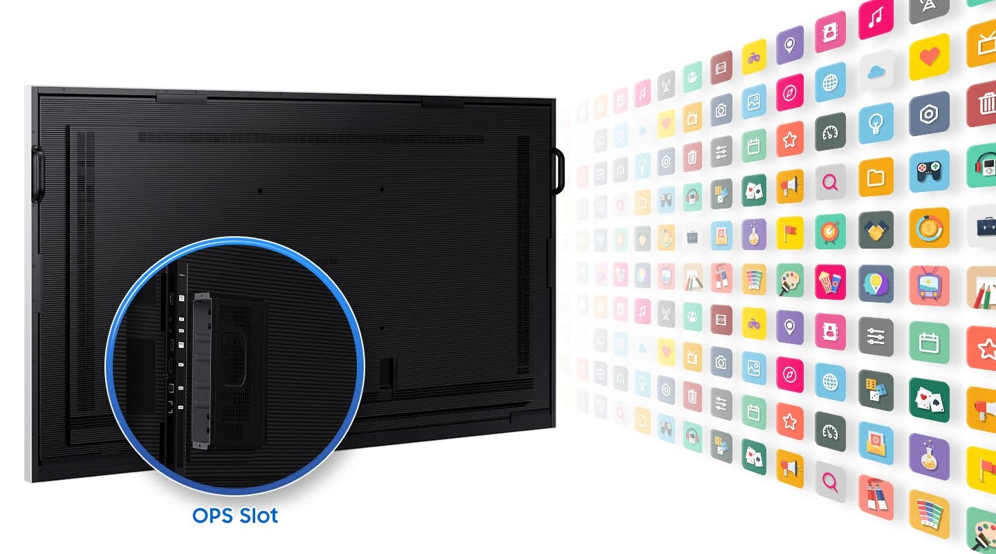 Se slotem OPS (Open Pluggable Specification) mohou vyučující využívat výuková řešení třetích stran. Flip Pro také umožní nasazení školního informačního systému (SIS) nebo instalaci výukových aplikací a nástrojů pro výuku.