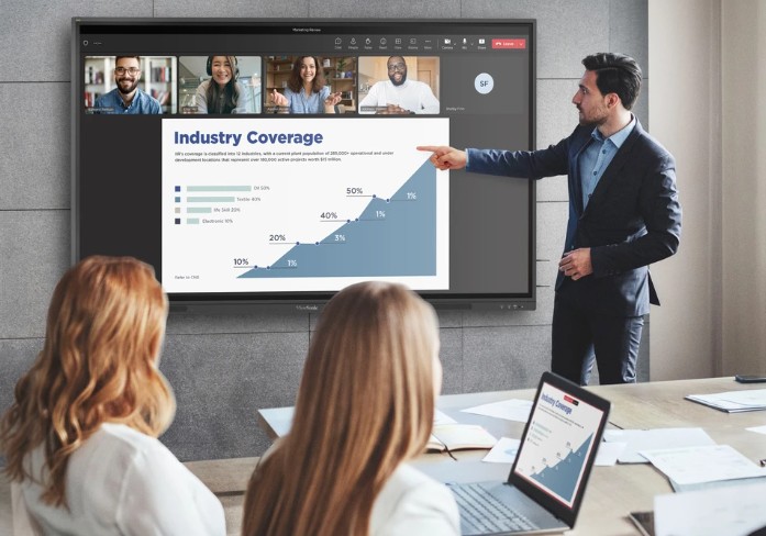 Vyzkoušejte plynulé připojení díky řešení s jedním kabelem USB-C. Stačí připojit notebook, stolní počítač nebo mobilní zařízení a okamžitě můžete prezentace přenést na velkou obrazovku, kde je uvidíte jasněji a budete k nim moci přidávat poznámky. Díky napájení až 65 W pohodlně nabíjí připojená zařízení a vytváří tak přehledný pracovní prostor.