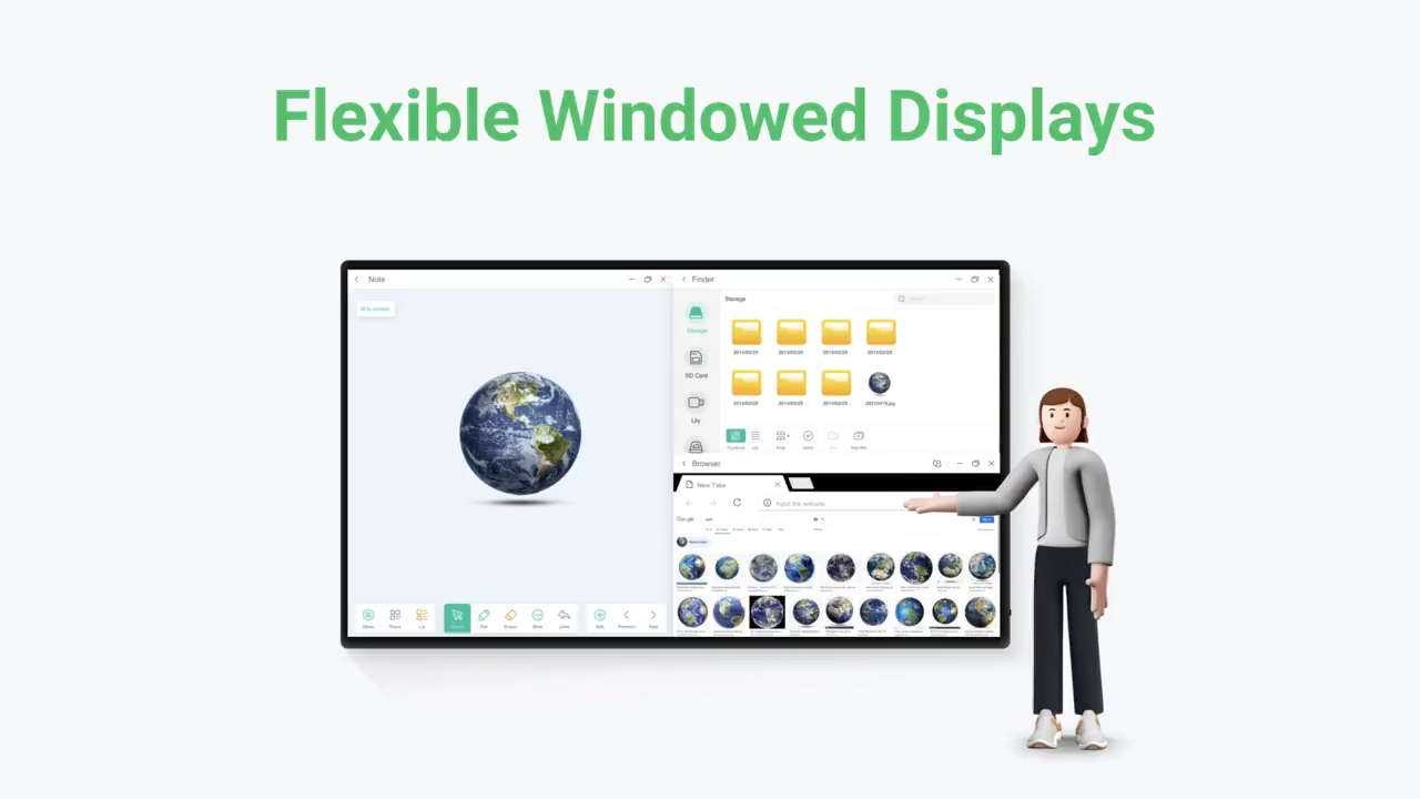 Vylepšete své prezentace pomocí iiWare 13E, který obsahuje Google EDLA, iiyama DMS, iiyama Share, Note, Browser, Cloud Drive prostřednictvím intuitivního a uživatelsky přívětivého softwaru, který vám umožní snadno spravovat, přizpůsobovat a snadno přistupovat k různým aplikacím.