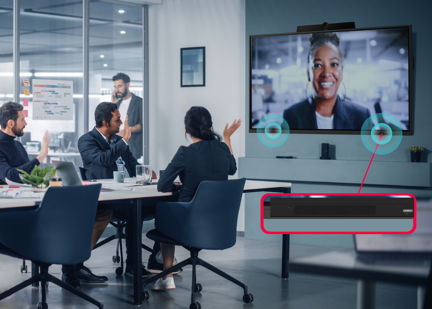 Vestavěné přední reproduktory podporují konfigurace pro konferenční hovory.