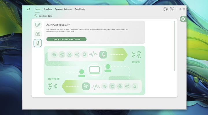 Funkce Acer PurifiedVoice™ a PurifiedView™ vylepšují videohovory tak, že potlačují hluk na pozadí, udržují vaši pozornost a zajišťují, že budete vždy vypadat a znít co nejlépe.