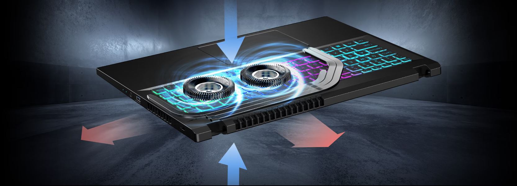 Zůstaňte v klidu i pod tlakem díky chlazení s dvojitým ventilátorem, dvojitým sáním a dvojitým odvodem vzduchu. Tento systém, optimalizovaný pro efektivní odvod tepla, udržuje stabilní výkon i během dlouhých herních maratonů a intenzivního multitaskingu.
