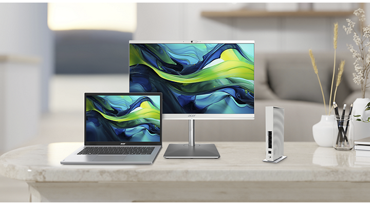 Acer Wave 7 doplňuje váš pečlivě zařízený obývací prostor svým elegantním vertikálním profilem a elegantní fasádou s vlnitou texturou, která dokonale spojuje formu a funkci.