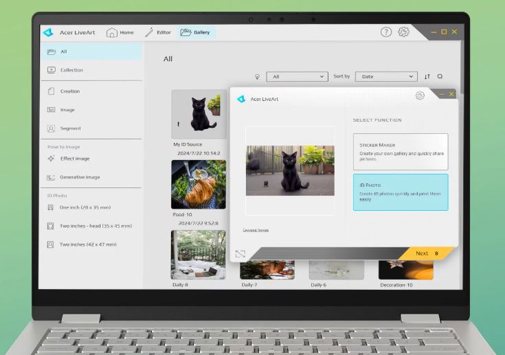 V mžiku odstraňte pozadí obrázků s aplikací Acer LiveArt™ 2.0. Upravujte a vytvářejte nálepky umělé inteligence, které můžete vložit kamkoli, a když vytvoříte snímek obrazovky nebo otevřete obrázek, nabídka aplikace se intuitivně otevře a nabídne pomoc.