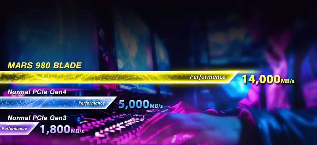 MARS 980 BLADE využívá přenosové rozhraní PCIe 4.0 a lze jej nainstalovat do PS5 jako rozšiřující pevný disk pro řešení potíží s nedostatkem úložiště PS5. MARS 980 BLADE perfektně zapadá do slotu pro disk PS5 a zároveň poskytuje plynulý herní zážitek bez zpoždění; zároveň si užíváte mistrovská díla trojitého A.