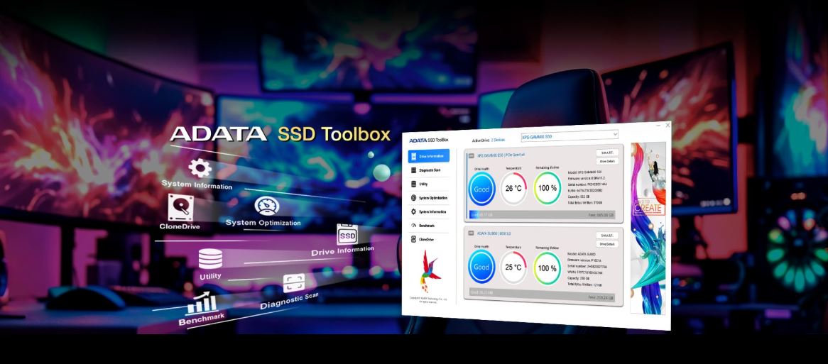 SSD Toolbox zajišťuje, že uživatelé využívají nejnovější verzi firmwaru pro nejlepší výkon; využívá technologii Self-Monitoring, Analysis and Reporting Technology (S.M.A.R.T.), která průběžně monitoruje stav a zbývající životnost jednotek SSD, stejně jako aktuální provozní teplotu a kapacitu úložiště.
