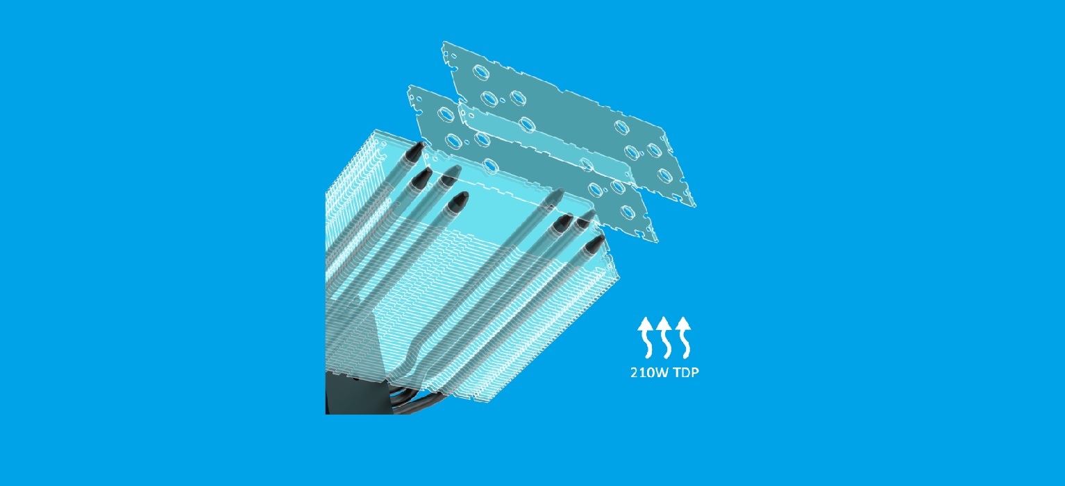 Vysoce vodivá technologie Direct Contact maximalizuje účinný přenos tepla z procesoru do žeber.