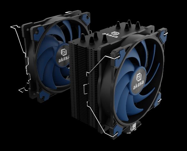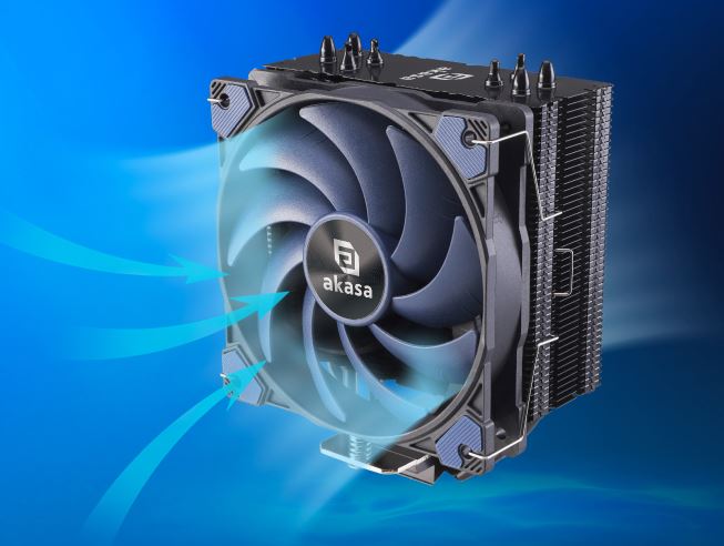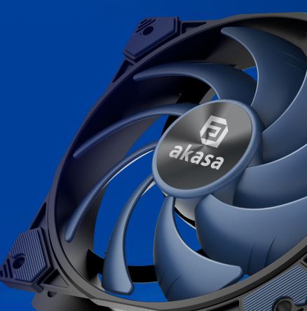 Ventilátor Alucia s pokročilou technologií lopatek, inteligentní synchronizovanou regulací otáček PWM a tlumicími podložkami pro snížení provozních vibrací. Kovový odznak Akasa posiluje prémiový dojem a celkovou estetiku.