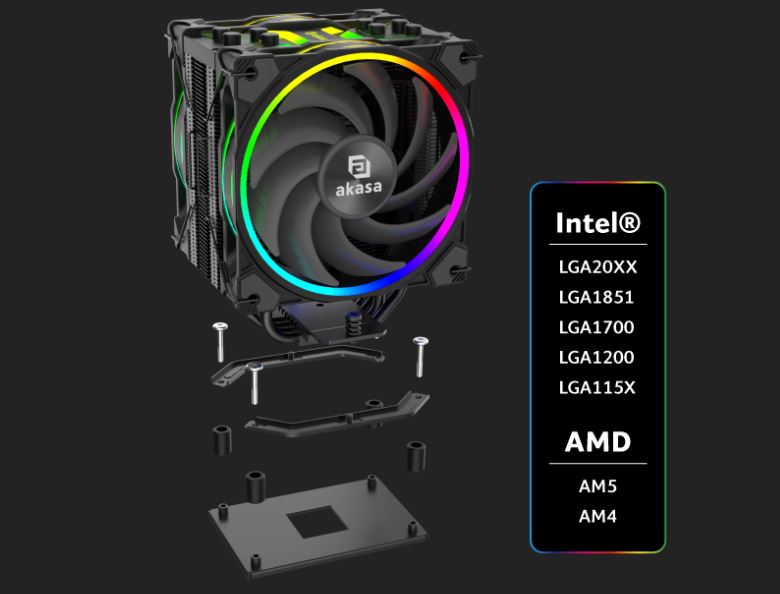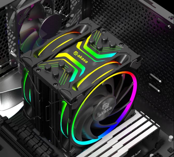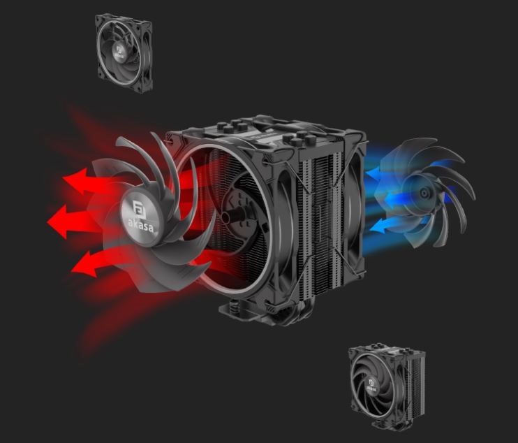 Sada chladiče procesoru Akasa SOHO H4 Plus a ventilátoru AR12 s obrácenými lopatkami