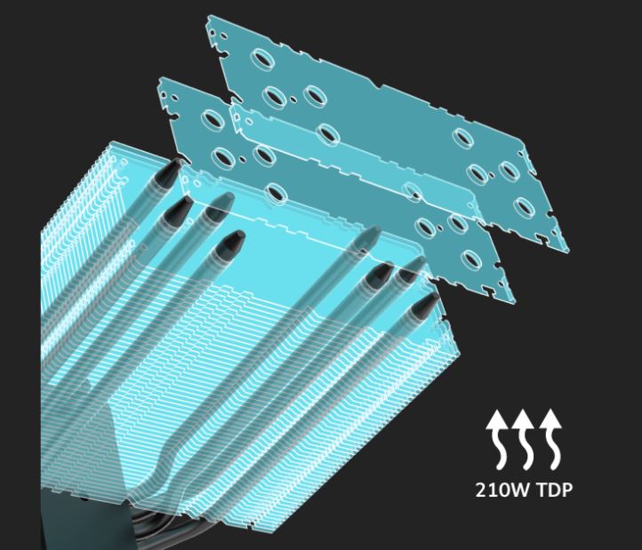 Jednosměrné proudění vzduchu s naším obráceným ventilátorem SOHO AR12 pomáhá zlepšit proudění vzduchu uvnitř skříně a poskytuje tak o 13,5 % lepší chlazení, až do maximálního TDP 210 W.
