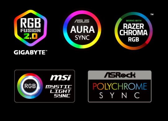Synchronizace základní desky je certifikována populárním softwarem RGB, včetně Asus®, ASRock®, Gigabyte™ RGB Fusion, MSI® a Razer Chroma™.
