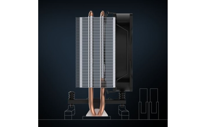 Odsazené uspořádání zajišťuje optimální přenos tepla od základny k žebrům – pro rovnoměrné rozložení tepla a lepší chladicí výkon.