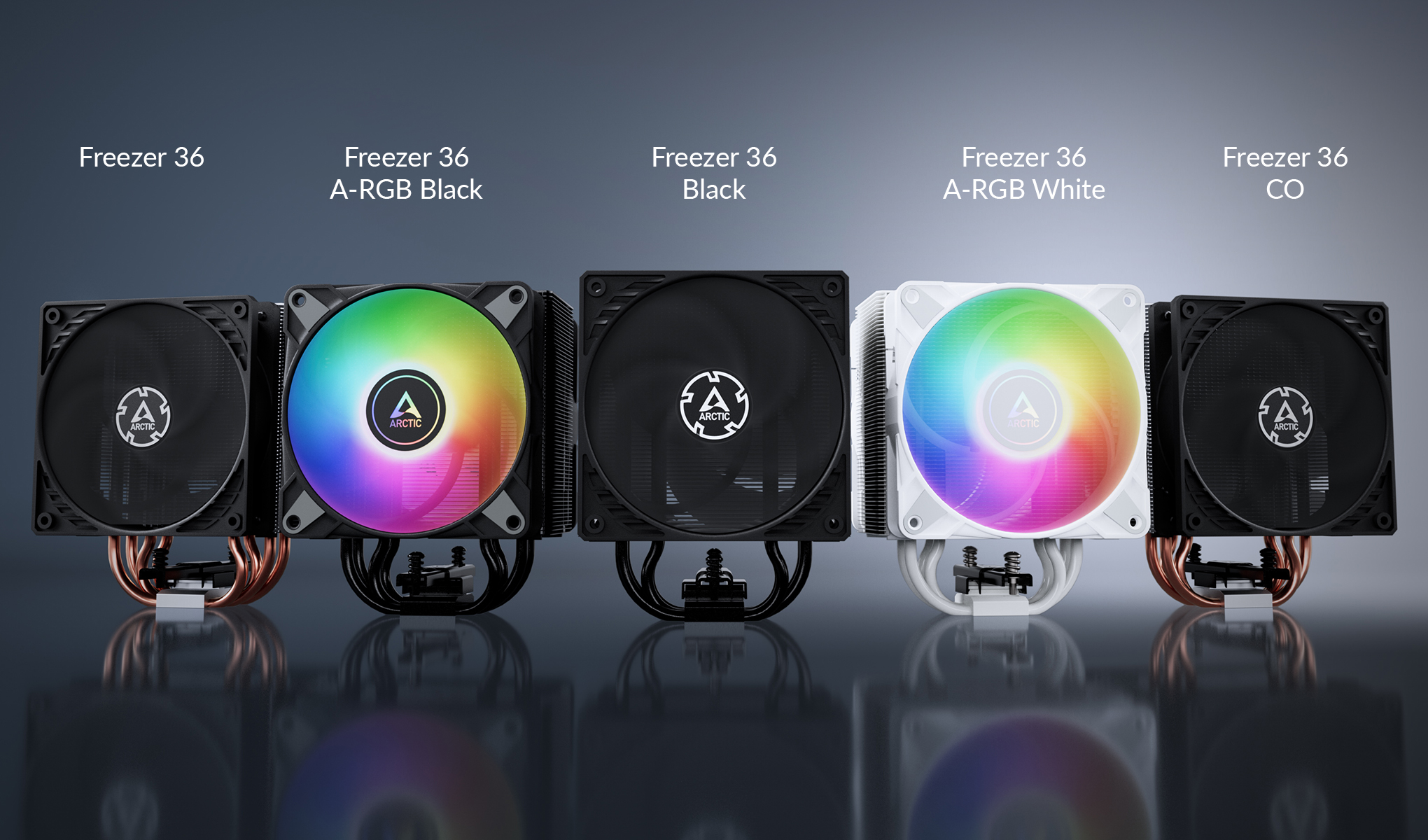 Freezer 36 je k dispozici v pěti různých verzích, všechny vybavené dvěma ventilátory v konfiguraci push-pull. Kromě standardního modelu s hliníkovým chladičem je k dispozici také verze s černým chladičem. Pro nepřetržitý provoz je k dispozici také verze CO, která je vybavena ventilátory s dvojitými kuličkovými ložisky. Alternativně si uživatelé mohou vybrat mezi černou a bílou verzí s ventilátory A-RGB.