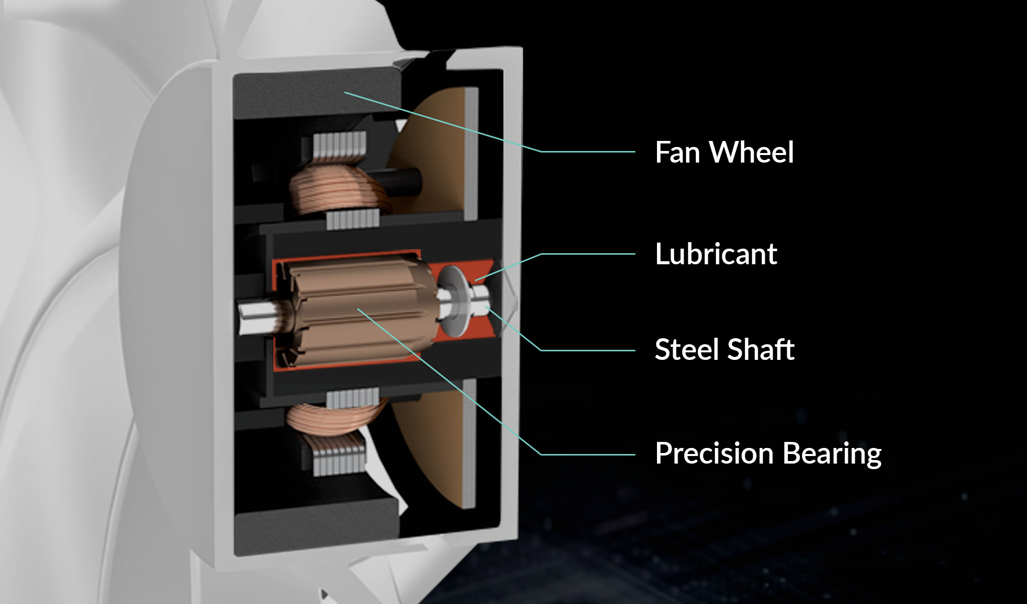 Díky kombinaci slitiny a maziva vyvinutého v Německu je tření v ložisku minimalizováno a je dosaženo vyšší účinnosti. Kromě zabránění úniku maziva je také minimalizováno opotřebení čepu a pouzdra. Tímto způsobem se generuje méně tepla, ložisko vydává méně hluku a životnost ventilátoru se výrazně prodlužuje.