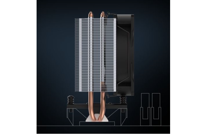 Odsazené uspořádání zajišťuje optimální přenos tepla od základny k žebrům – pro rovnoměrné rozložení tepla a lepší chladicí výkon.